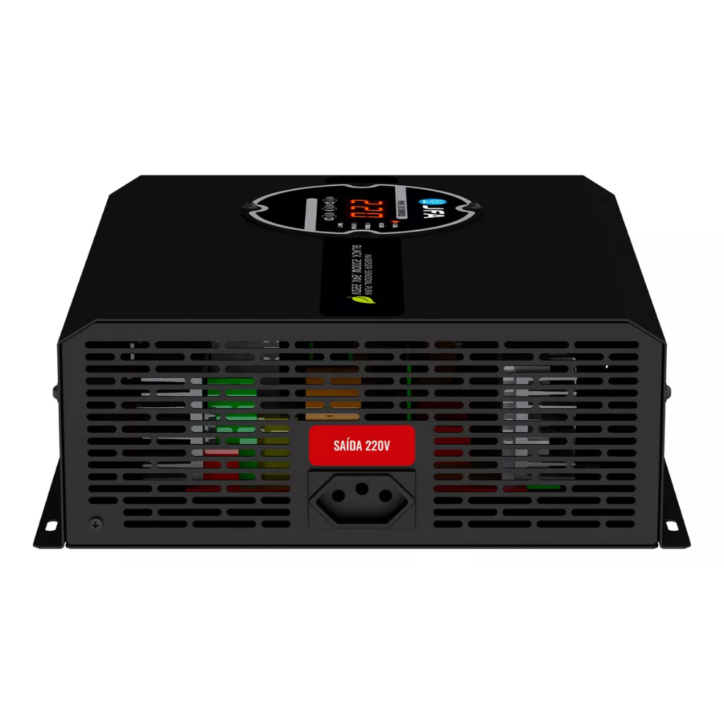 nversor JFA Off-Grid Senoidal Pura Black 2000W 24v 220v O Inversor Off-Grid Senoidal Pura Black 2000W 24v 220v da JFA é a escolha perfeita para quem precisa de eficiência e confiabilidade em sistemas fora da rede elétrica convencional. Com tecnologia de onda senoidal pura, este inversor é ideal para fornecer energia a equipamentos sensíveis, como TVs, computadores, geladeiras, fogão por indução, máquina de lavar, entre outros equipamentos elétricos, garantindo um funcionamento seguro e livre de interferências. Principais Características: • Comando Remoto: Controle o inversor à distância para maior comodidade. • SMART COOLER: Ação inteligente para um funcionamento mais silencioso e prolongamento da vida útil do inversor. • Display Digital Giratório: Permite monitoramento em tempo real das condições do inversor, seja na posição vertical ou horizontal. • Onda Senoidal Pura: Ideal para equipamentos sensíveis, garantindo um funcionamento seguro e sem interferências. • Funcionamento Ininterrupto: Opera de forma independente das oscilações da rede elétrica a partir do banco de baterias. • Configuração Personalizada: Permite ajustar as tensões de desligamento e religamento, protegendo o banco de baterias de descargas profundas. • Frequência Ajustável: Escolha entre 50 ou 60Hz para adequar-se às suas necessidades. • Uso em Sistemas Off-Grid: Ideal para sistemas de energia solar com controladores de carga MPPT e PWM. • Sistema de Proteção Avançado: Protege contra sobrecarga, curto-circuito, superaquecimento e baixa tensão, com auto restart. • Alto Rendimento: Com eficiência superior a 90%, aproveite ao máximo a energia disponível. • Display Digital Informativo: Permite monitoramento em tempo real das condições do inversor. • Design Compacto e Robusto: Perfeito para instalações em espaços reduzidos. • Fabricado no Brasil: Garantia de qualidade e suporte local. Informações Técnicas - ENTRADA: • Tensão Nominal: +/- 24Vdc • Faixa de Tensão: 21Vdc a 31Vdc ajustável • Corrente Nominal: 82A a 27,6Vdc • Corrente Máxima: 105A • Corte Sub Tensão da Bateria: Ajustável (mínimo 21Vdc) • Conexão: Conector Borne - M6 • Bitola Requerida: 35mm² Informações Técnicas - SAÍDA: • Tensão: 220Vac (+- 10%) • Corrente Máxima: 10,6A (típico) • Corrente de Pico: 21,2A (típico) • Potência Nominal: 2000W/2330VA • Potência de Pico: 2000W/4660VA • Forma de Onda: Senoidal Pura • Frequência: 60/50Hz Ajustável • Conexão: Tomada Tripolar 20A ABNT NBR 14136 Informações Técnicas - GERAIS: • Rendimento: >90% • Arrefecimento: Forçada com Controle Inteligente • Temperatura de Operação: 0ºC a 74ºC com proteção interna em 75ºC • Dimensões (mm): 358,7mm x 286,7mm x 97,1mm (LxAxP)