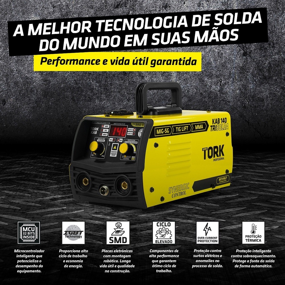 Inversor Solda Mig Eletrodo 140A Bivolt 127/220V Tocha Mascara Esquadro Tork