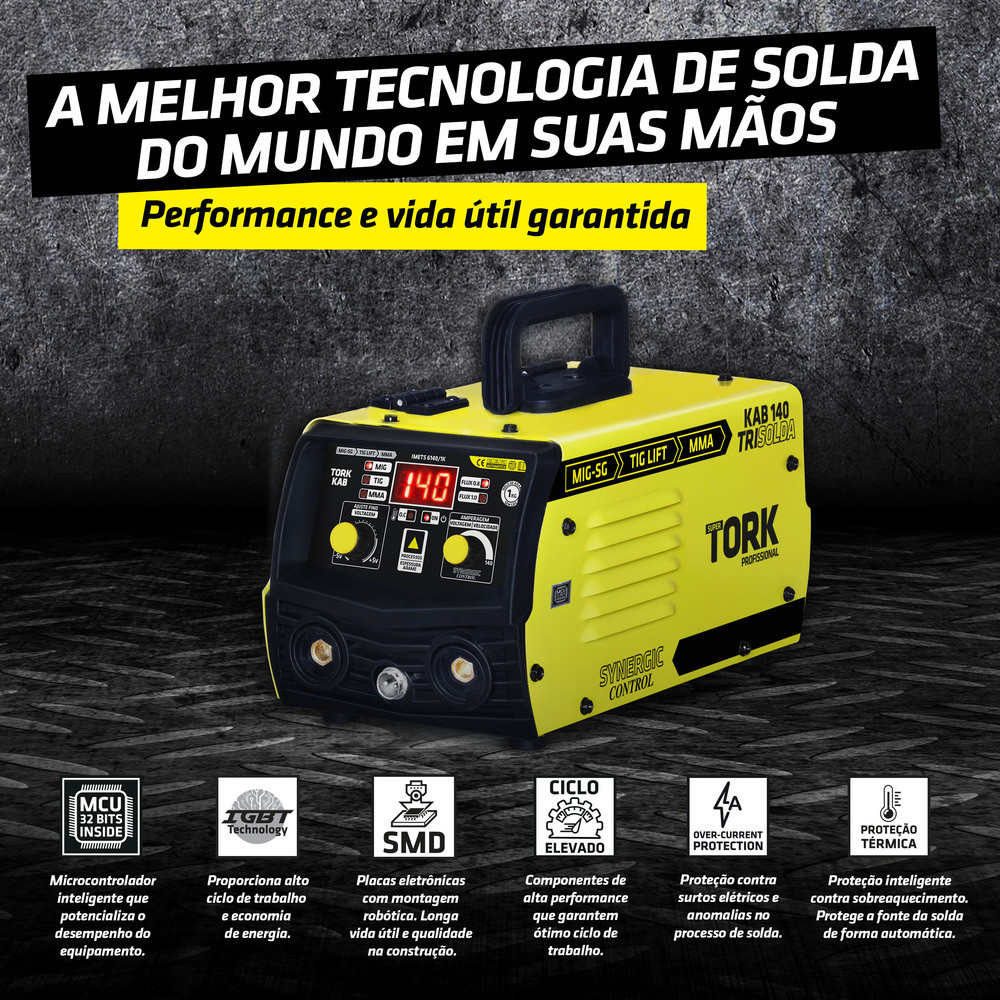 Inversor Solda Mig Eletrodo Tig 140A Com Mascara Arame Esquadro 220V Tork