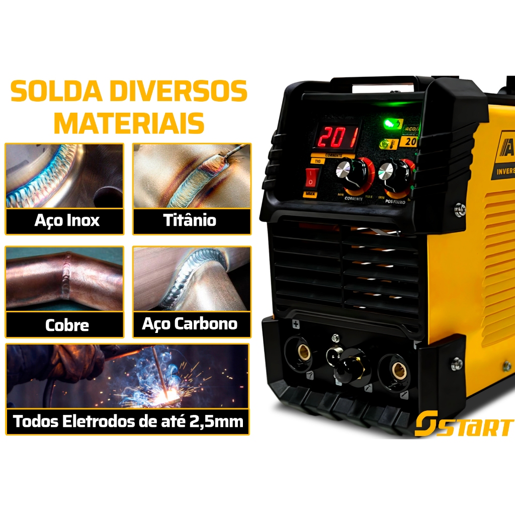 Inversora De Solda Start Multiprocessos TIG MMA Eletrodo MaxTig 200A Regulador Argônio E Acessórios
