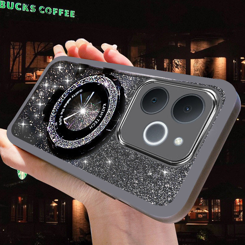 Invólucro Para Realme NOTE 70 70T NOTE70 4G Transparente Caso De Smartphone Com Anel De CD 3D Suporte Bling Casos De Tel