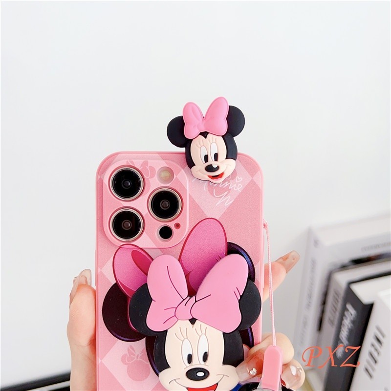 Invólucro Para Samsung A07 A17 A06 A16 5G Dos Desenhos Animados Bonito Minnie Mickey Com Cordão Capa Macia Caso De Telef