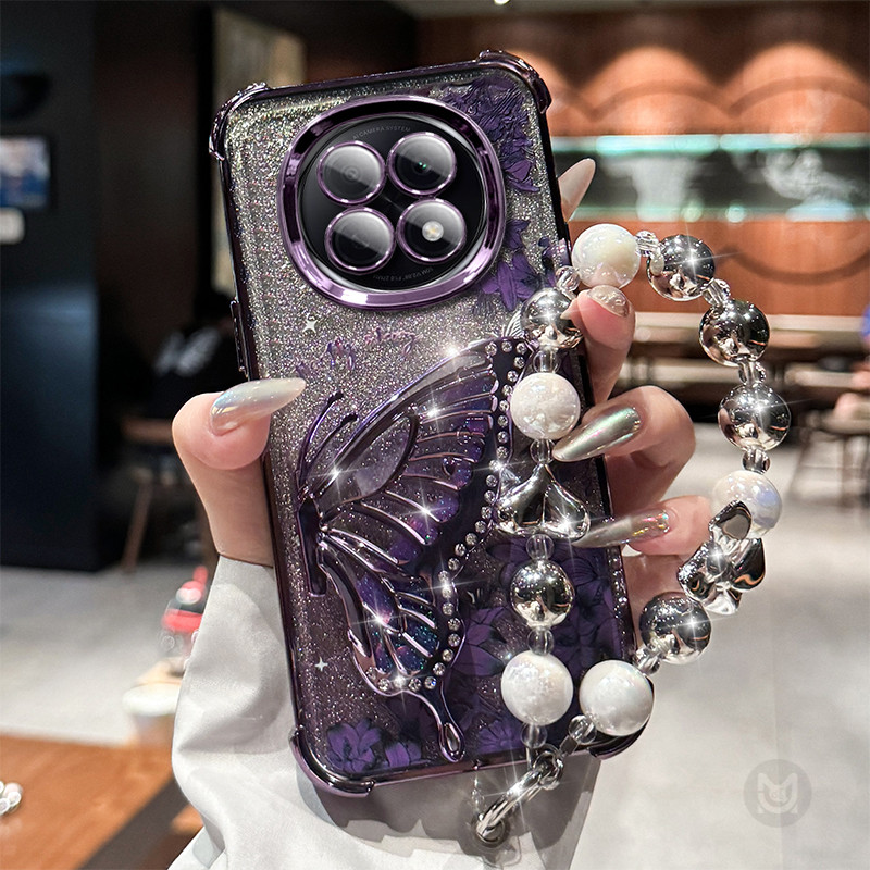 Invólucro Para Xiaomi Redmi Nota 13 14 15 Pro Plus Areia Movediça Glitter Borboleta Capa De Telefone Com Alça De Pulso