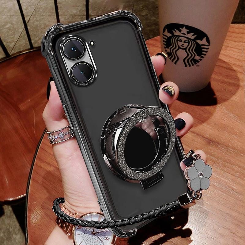 Invólucro Redmi A5 caso de telefone à prova de choque espelho titular magnético flor pulseira caso translúcido proteção
