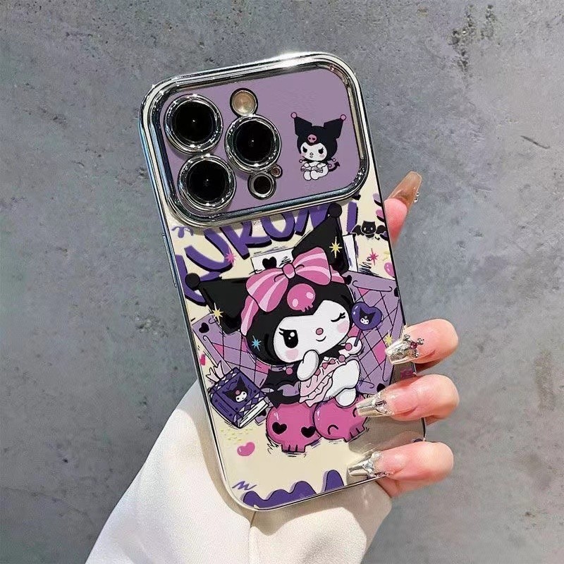 IPhone 16 15 14 13 12 11 Pro Max X XR XS 7 8 Plus INS Roxo Bonito Escuro Kuromi Pulseira Caso De Telefone Galvanizado Ca