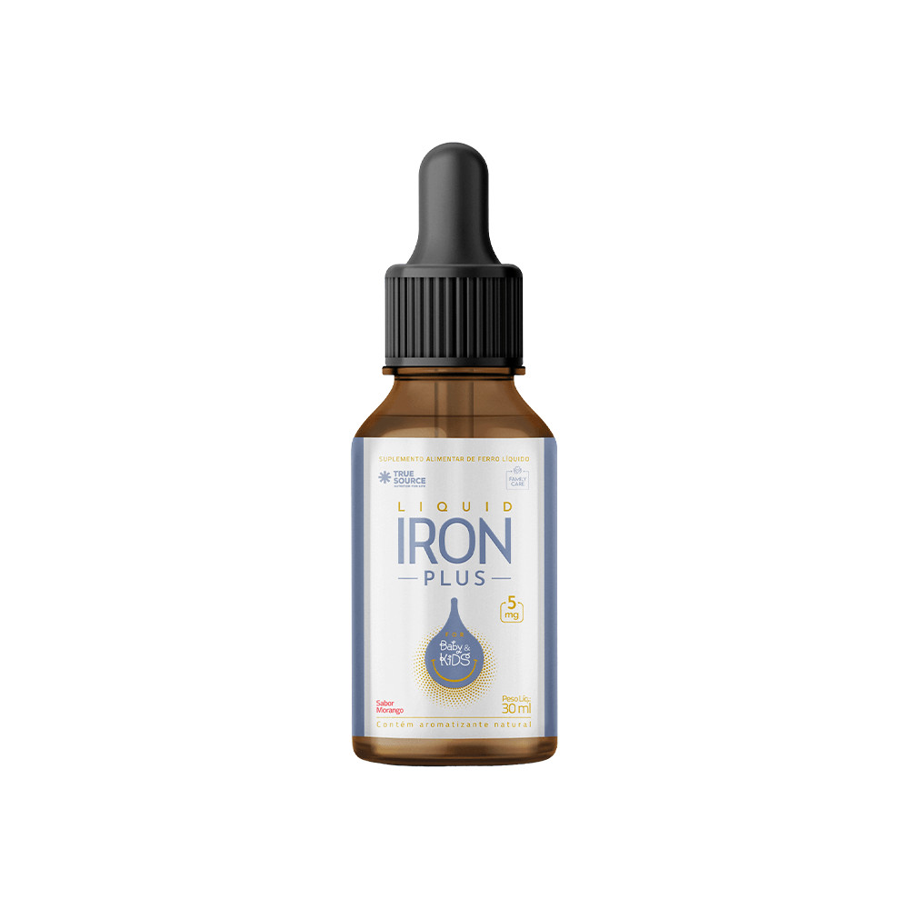 Liquid Iron Plus 30 ml - True Source | Ferro Líquido com Alta Absorção e Sabor Morango Descrição do Produto: O Liquid Iron Plus da True Source é um suplemento de ferro líquido, desenvolvido especialmente para atender as necessidades nutricionais de bebês, crianças e adolescentes. Contendo 5 mg de ferro por dose, o Liquid Iron Plus é formulado com Lipofer®, uma tecnologia de microencapsulação que oferece ferro em sua forma ativa, com alta absorção e sem gosto residual. Este suplemento é ideal para melhorar os níveis de energia e apoiar o funcionamento do sistema imunológico, sem os efeitos colaterais comuns, como gostos metálicos desagradáveis e problemas gastrointestinais. Benefícios Principais: Alta absorção: O ferro na forma ativa (Lipofer®) garante uma excelente biodisponibilidade, promovendo uma rápida reposição de ferro no organismo. Sabor agradável: Sabor natural de morango, sem gosto metálico, tornando o consumo mais agradável, especialmente para crianças. Zero aditivos prejudiciais: Sem corantes artificiais, sem açúcares adicionados e sem glúten. Ideal para todas as idades: Pode ser consumido por bebês a partir de 0 meses, crianças e adolescentes. Por que escolher o Liquid Iron Plus? A deficiência de ferro é uma das causas mais comuns de anemia, uma condição que afeta milhões de pessoas em todo o mundo, especialmente crianças e gestantes. O Liquid Iron Plus é uma solução segura e eficaz para prevenir e tratar a deficiência de ferro, contribuindo para a saúde e o bem-estar geral. Modo de Uso: Consumir 5 gotas (03 ml) ao dia ou conforme orientação do médico ou nutricionista. Indicado para bebês a partir de 0 meses, crianças e adolescentes. Ingredientes: Pirofosfato férrico micronizado - Lipofer® Água purificada Umectante glicerol Aroma natural de morango Acidulante ácido cítrico Emulsificante lecitina de girassol Tabela Nutricional: Ferro: 5 mg por dose (03 ml - 5 gotas) Percentual do Valor Diário (%VD): 0 a 6 meses: 1.852% 7 a 11 meses: 45% 1 a 3 anos: 71% 7 a 10 anos: 50% 9 a 18 anos: 33%