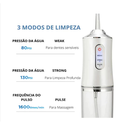 Irrigador Oral Fio Dental Portátil Para Viagem Em Casa 3 Modos De Limpeza 220ML ANG