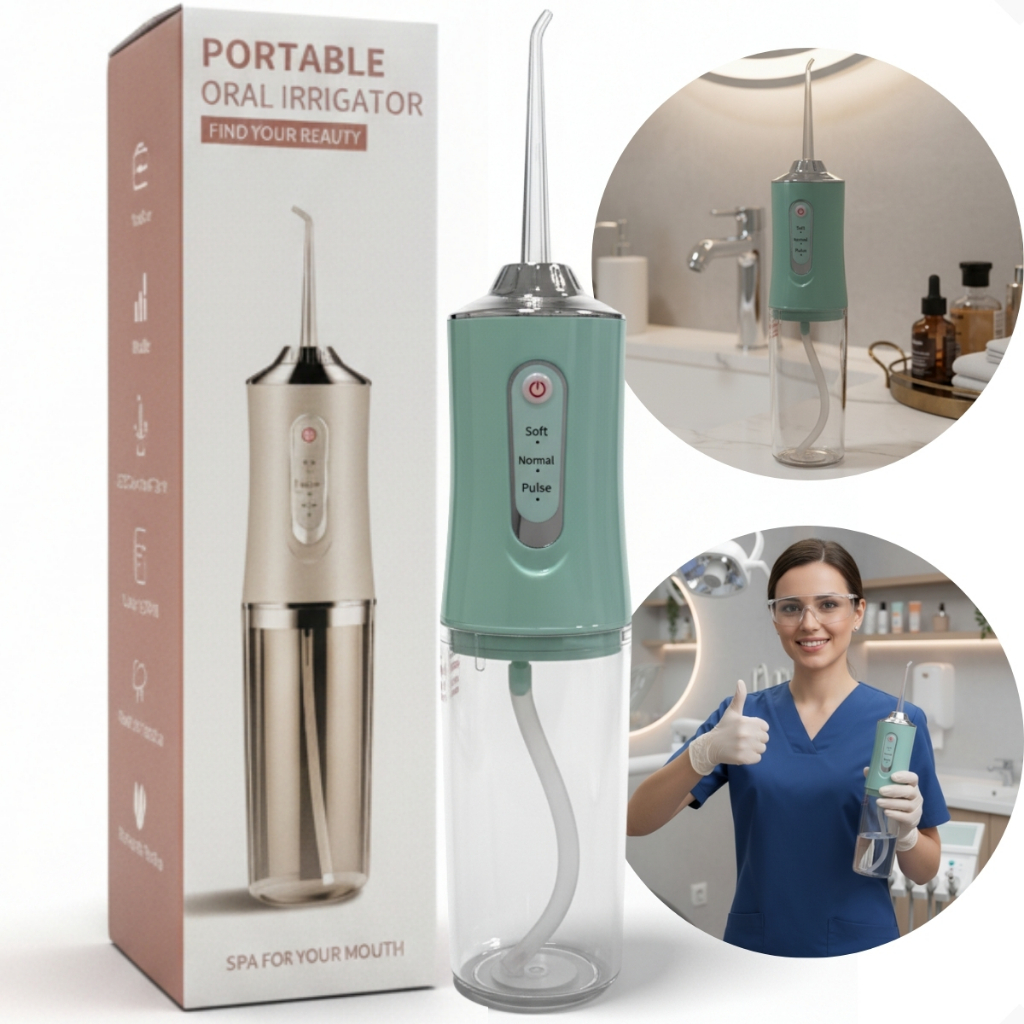 IRRIGADOR ORAL ELÉTRICO PORTÁTIL 230ML Mantenha sua higiene bucal em dia com praticidade e eficiência! O Irrigador Oral Elétrico Portátil é ideal para quem busca uma limpeza profunda e completa, removendo resíduos e placas bacterianas onde a escova e o fio dental não alcançam. Com 3 modos de pressão e 4 bicos diferentes, ele se adapta às suas necessidades, proporcionando conforto e eficácia no uso diário. Compacto e recarregável via USB, é perfeito para levar em viagens ou usar em casa. Seu reservatório de 230 ml e o bico com giro de 360° garantem praticidade, alcance e higiene em cada uso. ESPECIFICAÇÕES TÉCNICAS: Marca: SPACE EYE Material: Plástico ABS resistente Capacidade do reservatório: 230 ml Modos de limpeza: 3 (Soft, Normal e Pulse) Bicos inclusos: 4 Rotação do bico: 360° É recarregável: Sim Tipo de carregamento: USB É portátil: Sim Proteção: IPX7 Tensão: Bivolt Garantia: 30 dias CUIDADOS: Lave o reservatório regularmente. Utilize apenas água limpa ou soluções recomendadas. Evite mergulhar o corpo do aparelho em água. Mantenha os bicos higienizados após o uso. Armazene em local seco e ventilado. ITENS INCLUSOS: 1 Irrigador Oral Elétrico Portátil 4 Bicos de irrigação 1 Cabo USB para recarga 1 Manual de instruções