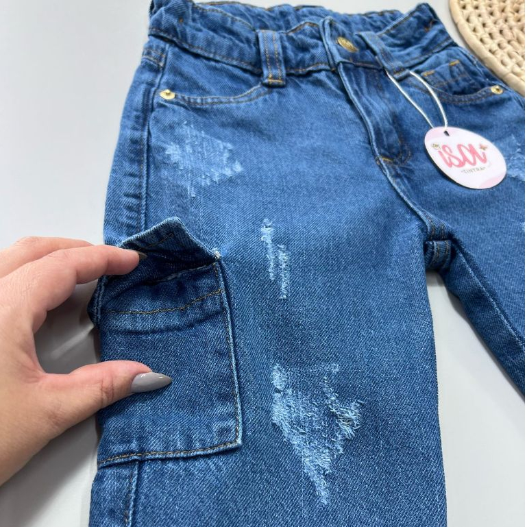 ISA CINTRA Calça Jeans Jogger Cargo Infantil De Menina Mini Diva Moda Blogueirinha