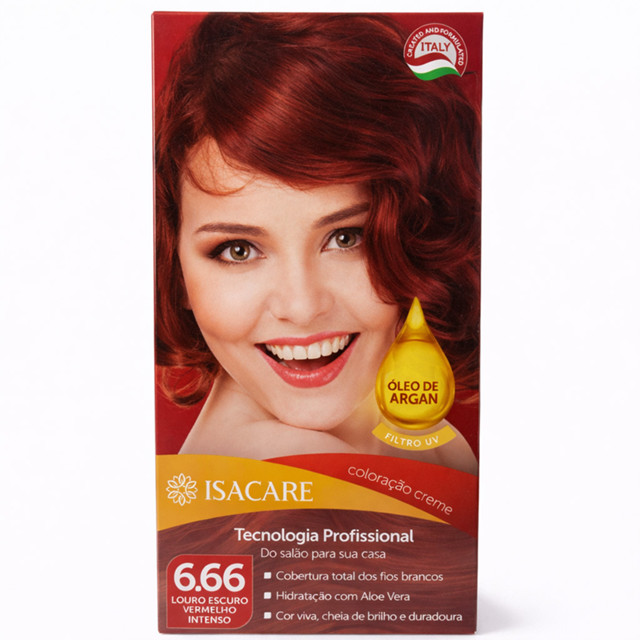 | Isacare - Coloração Creme 6.66 Louro Escuro Vermelho Intenso Com Ox... este produto | R$ 19,99 | — | 5.0/5 | 4 |