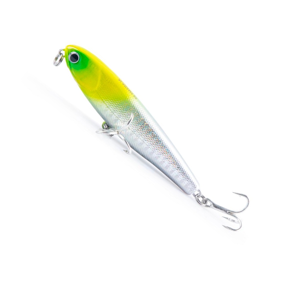 O modelo Alabama 85 é uma tradicional Isca com nado em Z ou nado errático simulando peixe ferido, ou fugindo de um predador, chamando assim atenção de grandes predadores. Ela possui um rattlin bem forte e pode ser trabalhada em velocidade lenta ou rápida. O interessante desse modelo é que seu peso é concentrado em sua parte traseira, além do seu formado em slim que proporciona um arremesso confortável e preciso. É uma isca indispensável para quem irá pescar na Amazônia, excelente para pesca de Tucunarés de médio e grande porte. Ela pode ser trabalhada com a ponta da vara para baixo realizando toques e recolhimentos de linha simultâneos, assim a isca promoverá um movimento de “zara” de baixo d’agua. Considerada uma isca versátil e de fácil utilização, ela tem um arremesso eficiente, sendo indicada principalmente para pesca esportiva de: • Tucunarés de médio e pequeno porte; • Anchovas; • Trairão; • Dourados e muitos outros predadores Lembrando que essa Isca Artificial possui variação de cores, sendo necessário escolher a cor desejada no ato da compra. Somente a critério de curiosidade segue abaixo algumas informações para lhe ajudar na escolha da cor de sua Isca Artificial. Os peixes como o Tucunaré e Robalo possuem uma excelente visão, mas, esses peixes não conseguem definir exatamente as cores, somente o contraste das cores de cada isca artificial. Além disso, os peixes são levados a atacar uma Isca Artificial pelo som, silhueta, movimento, vibração e o brilho em si do material. Fatores como cor da água, profundidade, luminosidade e terreno também são cruciais para escolha correta de sua isca. Em resumo, praticamente todas as cores de Iscas Artificiais são capazes de atrair os peixes, depende do psicológico do pescador. A Alabama 85 possui peso de 9g que a torna Floating, tendo 8,5 cm de comprimento de corpo equipada com duas garateias. Especificações Técnicas: - Marca: Maruri - Origem: Industria Brasileira - Modelo: Isca Artificial Alabama 85 Superfície 8,5 cm 9g – Maruri - Material: Plástico ABS - Tipo: Zara “Nado em Z” “Nado errático” - Ação: Superfície - Peso: 9g – Floating - Comprimento: 8,5 cm de corpo - 2 Garateias - Dimensões embalagem (A x L x C ): 2 cm x 4 cm x 12,5 cm Itens Inclusos: - 01 Isca Artificial Alabama 85 Superfície 8,5 cm 9g – Maruri