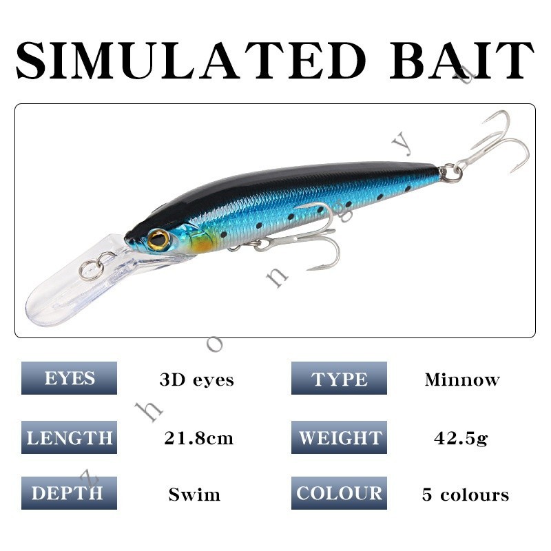 Isca Artificial Isca Longa Fundição Mergulho Profundo Tábua de Língua Longa Big Minnow 18.1cm42.5g com Três Anzóis + Simulação de Contas de Anel Falsas Isca