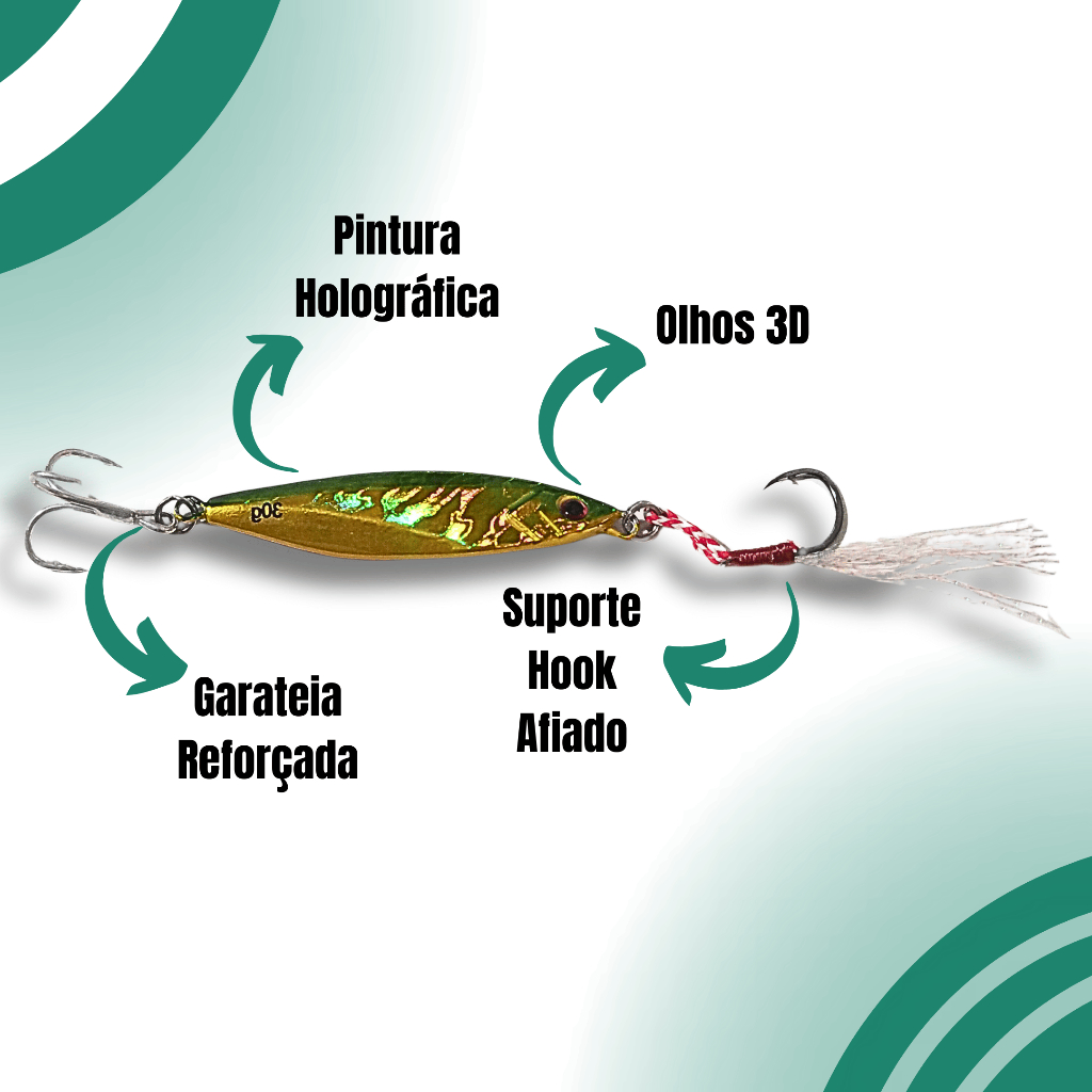 Tralha de Ouro – A loja da pesca esportiva Somos um ecommerce voltado para a pesca esportiva em pesqueiros e temos como objetivo ajudar você pescador(a) a encontrar o melhor equipamento para sua pescaria, pois não vendemos apenas produtos e sim soluções. Nosso pós-venda diferenciado garante segurança e todo o suporte necessário para a melhor experiência de compra possível, sem complicações. A isca Artificial Slow Jig é o produto que não pode faltar na sua pescaria. Produto de alta qualidade, desempenho e muito atrativo para os peixes predadores. Com certeza irá fazer total diferença em sua pescaria. DESCRIÇÃO: - 01un Isca Jumping Jig slow Metal 30g (COR DE ACORDO COM A VARIAÇÃO ESCOLHIDA NO ANÚNCIO) DESCRIÇÃO DO PRODUTO: - Tamanho: 7cm - Peso: 30g - Olhos 3D holográficos ( ajudar a atrair peixes predadores) - Pintura a laser holográfica para refletir a luz. - Equipada com garateia e suporte hook Agradecemos sua visita ao nosso anúncio e aguardamos sua compra.