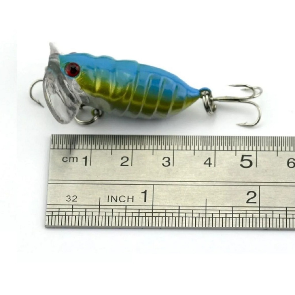 Isca artificial para pesca - Cigarrinha Tamanho: 4 cm Peso: 5g (aprox) Imita um inseto agonizando na água. Atrai todos peixes predadores, tais como: traíras, tucunarés, robalos, black bass e principalmente tilápias entre outros. Obs: As cores são enviadas aleatoriamente conforme disponíveis no estoque ESSE ANÚNCIO SÃO PARA 3 ISCAS