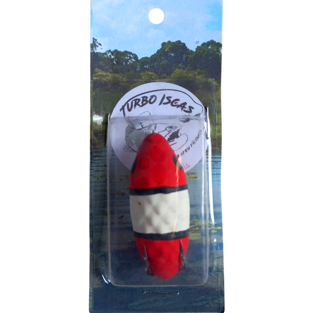 Isca artesanal tipo frog, fabricada em borracha. No recolhimento contínuo faz um leve movimento de zara, tornando-a irresistível para as traíras. É equipada com anzol duplo super afiado, o que facilita a captura até mesmo das pequenas traíras. Foi idealizada para o pescador que busca uma isca pequena, mas boa de arremesso. Tamanho: 5 cm Peso: 10 g Marca: Turbo Iscas