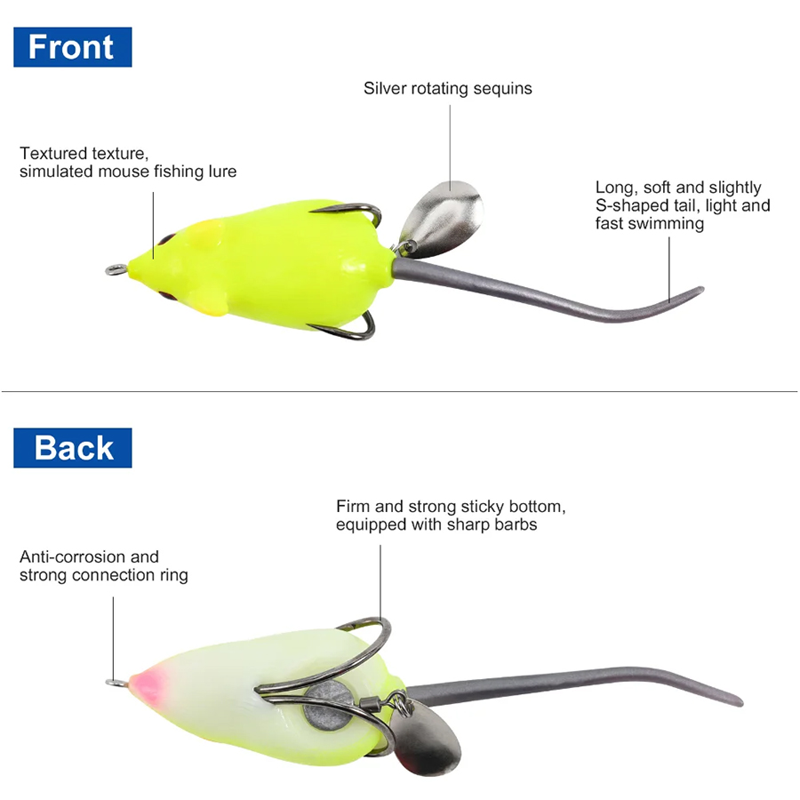 Iscas de Pesca Artificiais Rato Lifelike 5,5cm 10g Anzóis Cabeça de Cobra Wobblers para Peixes de Água Salgada