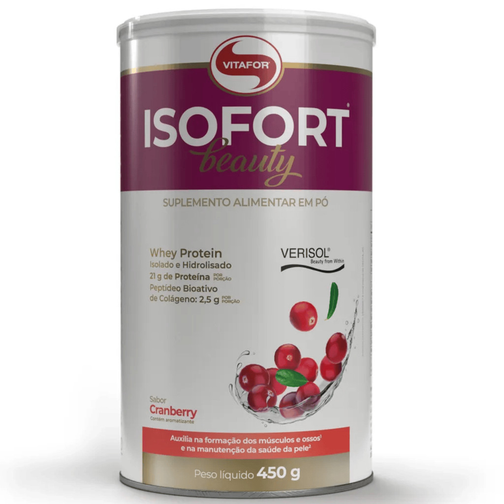 Sobre o produto: ISOFORT® BEAUTY é um suplemento alimentar com formulação avançada que une proteína isolada e hidrolisada do soro do leite com Peptídeos Bioativos de Colágeno Verisol®, vitaminas A, C, biotina e o mineral zinco. Essa combinação oferece suporte à formação muscular e óssea, ao mesmo tempo em que contribui para a manutenção da saúde da pele, cabelos, unhas e sistema imunológico. Ideal para quem busca resultados estéticos e funcionais em um único produto, o ISOFORT® BEAUTY alia a nutrição esportiva ao cuidado com a beleza. Como consumir: Diluir 30 g (aproximadamente 2 dosadores) em 200 mL de água ou bebida de sua preferência. Consumir 1 vez ao dia ou conforme orientação de médico ou nutricionista. Benefícios - Auxilia na formação dos músculos e ossos - Promove a manutenção da saúde da pele - Contribui para a manutenção de cabelos e unhas - Atua no fortalecimento do sistema imune - Auxilia no metabolismo energético e de macronutrientes - Antioxidante, ajuda na proteção contra danos dos radicais livres - Estimula a síntese de colágeno e proteínas Alergênicos - Contém derivados de leite e soja (lecitina). - Não contém glúten. Ingredientes - Proteína isolada do soro do leite - Proteína hidrolisada do soro do leite - Peptídeos bioativos de colágeno (Verisol®) - Ácido ascórbico (vitamina C) - Acetato de retinol (vitamina A) - D-biotina - Zinco quelato - Niacina - Aromatizantes - Edulcorantes (taumatina e glicosídeos de esteviol). Advertências - Produto indicado para adultos. - Gestantes, nutrizes e crianças somente devem consumir este produto sob orientação de nutricionista ou médico. - Armazenar em local fresco, seco e ao abrigo da luz. - Este produto não substitui uma alimentação equilibrada e seu consumo deve ser orientado por um profissional. Conclusão: ISOFORT® BEAUTY é a escolha ideal para quem busca aliar desempenho físico à saúde e estética. Com um blend proteico de alta qualidade, colágeno Verisol® e micronutrientes fundamentais, oferece suporte completo para a manutenção da massa muscular, integridade da pele e funcionamento do organismo. Um produto completo, com alto padrão de pureza e tecnologia de ponta, validado pelo Selo de Qualidade VLabor