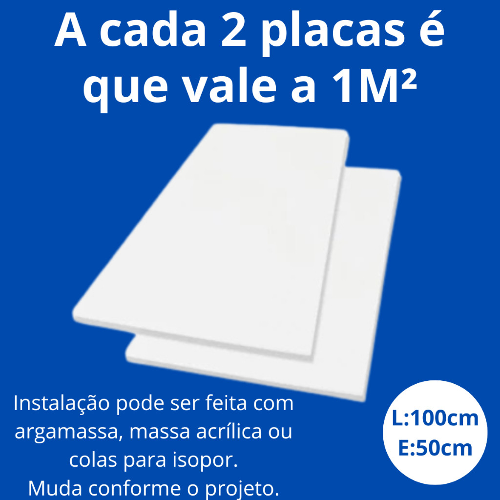 ATENÇÃO! POR MOTIVOS DE VOLUME ENVIAMOS NO MÁXIMO 50 PLACAS POR COMPRA, PARA NÃO EXCEDER O TAMANHO MÁXIMO PERMITIDO PELA SHOPEE. CASO PRECISE DE MAIS QUANTIDADES FAVOR EFETUAR OUTRA COMPRA SEPARADA. 30 Anos de Experiência no no ramo do EPS (isopor) Temos a postagem e a Entrega mais rápida no seguimento de Placas de Isopor!!! Enviamos com Nota Fiscal!!! Informações Técnicas: - Medida: 50 x 100 cm - Espessura: 10mm (1cm) - Densidade: 10 a 13 Kg/M³ // P1 ou F1 // Tipo 1 - Rendimento: 10 PLACAS cobrem 5m² 15 PLACAS cobrem 7,5m² 20 PLACAS cobre 10m² 25 PLACAS cobre 12,5m² 30 PLACAS cobre 15m² 35 PLACAS cobre 17,5m² 40 PLACAS cobre 20m² 45 PLACAS cobrem 22,5m² 50 PLACAS cobrem 25m² A Placa de Isopor, possui excelente acabamento e resistência para diversas aplicações, entre elas: Escolar, Decoração, Lazer, Artes e Embalagem. Material Anti Chamas e Termo Acústica. Material oferece incrível qualidade e durabilidade. Possível pintar ou envernizar, com utilização de produtos a base de água ( tinta ou verniz ). Para colar, necessário utilização de Cola para isopor ou Argamassa. Principais aplicações: - Isolamento Acústico para Estúdio - Isolamento Térmico de Ambientes Refrigerado - Isolamento Térmico de Equipamentos que operam em baixas temperaturas - Isolamento Térmico de Telhados e Coberturas - Preenchimento de Juntas de Dilatação na Construção - Isolamento Térmico e impermeabilização de Compartimentos Frios de Embarcações, Caminhões e Vagões. Deixe sua casa muito mais charmosa com os produtos do REI DO ISOPOR! SOMOS A MAIOR EMPRESA DE ISOPOR EM CHAPAS DO BRASIL! ESTAMOS DISPONIVEL PARA TE ATENDER COM QUALIDADE E PRATICIDADE.