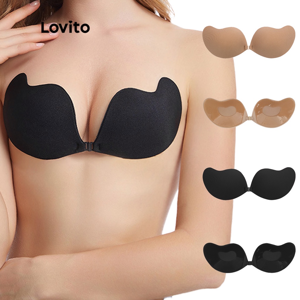 (Item Essencial) Lovito Casual Suitiã Adesivo Com Bojo Acessório De Lingerie Liso Respirável Antiderrapante De Silicone Sutiã Push Up Para Mulheres