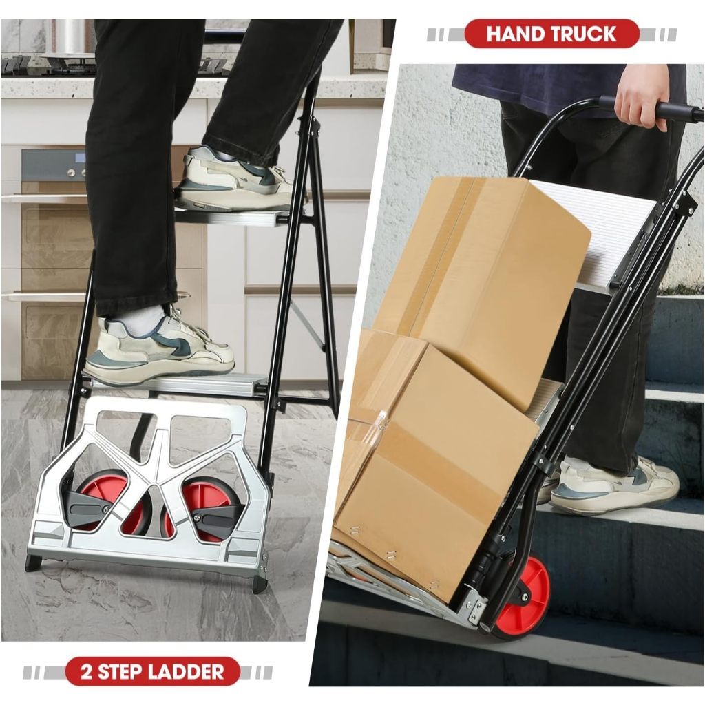PRATICIDADE E SEGURANÇA PARA O SEU DIA A DIA! Escada Banqueta + Carrinho de Mão Yesop!!! Escada 3 degraus!!! Carrinho De Carga Com Escada Dobrável 3 Degraus!!! Funções principais: Escada Modo - A Escada Banqueta de Alumínio com 3 Degraus da é o acessório ideal para quem busca praticidade e segurança em suas atividades diárias. Com design leve e compacto, ela pode ser facilmente transportada graças à sua alça integrada e armazenada em qualquer lugar. - Os degraus largos oferecem maior conforto durante o uso, enquanto o patamar vermelho de polipropileno altamente resistente e as travas de segurança garantem estabilidade e segurança. Equipado com sapatas antiderrapantes, este produto suporta até 250 kg, sendo ideal para tarefas domésticas e profissionais. Carrinho Modo - Dobrado para se tornar um carrinho plano Com uma capacidade de carga de 100kg, o carrinho permite transportar uma variedade de objetos pesados, tornando-o ideal para o manuseio de cargas em armazéns e outros locais. - Equipado com rodas (Dobrável e encolhível), movimento flexível, adaptável a pisos internos e externos. - Feito de alumínio resistente, mas robusto o suficiente para lidar com cargas pesadas. Seu comprimento de 97.5 cm e largura de 41 cm proporcionam uma plataforma estável para acomodar uma variedade de itens. - O carrinho é projetado para se adaptar a diferentes tipos de carga, como caixas, sacos, pacotes e outros objetos. Isso torna o carrinho adequado para uma ampla gama de aplicações e setores. Escada dobrável de 3 degraus DADOS TÉCNICOS: Material do corpo principal: ferro + liga de alumínio Capacidade de carga da escada: 250 kg Capacidade de carga do carrinho: 100 kg Tamanho da escada: 67*47.5*106cm Tamanho do carrinho: 43*47.5*112cm Tamanho dobrável: 6.5*47.5*116cm vir com: uma fita de cintagem adicional de 1,2 m Escada dobrável de 2 degraus DADOS TÉCNICOS: Material do corpo principal: ferro + liga de alumínio Capacidade de carga da escada: 250 kg Capacidade de carga do carrinho: 100 kg Tamanho da escada: 57,5*47,5*92cm Tamanho do carrinho: 43*47,5*97,5cm Tamanho dobrável: 6,5*47,5*100cm vir com: uma fita de cintagem adicional de 1,2 m