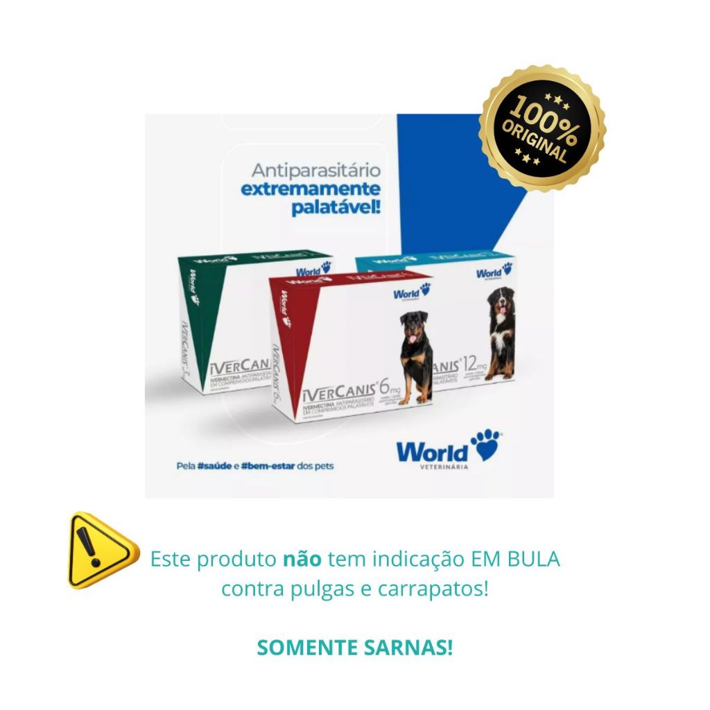 Ivernectina Ivercanis 3mg Cães 15kg 4 Comprimidos World