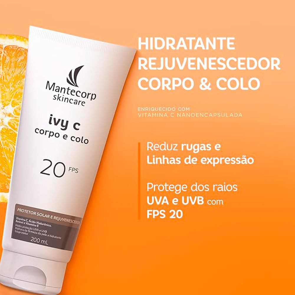 IVY C CORPO E COLO SÉRUM REJUVENESCEDOR CORPORAL IVY C Corpo e Colo é um sérum rejuvenescedor corporal a base de Vitamina C nanoencapsulada, estabilizada e protegida, com alta ação antioxidante e reju