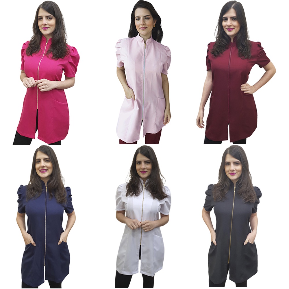 ** As medidas podem ser encontradas na última imagem do anúncio e também na opção "Guia de Tamanhos" nesta mesma página. Nossos jalecos são bem justinhos e ficam lindos no corpo. Lembre-se também que usamos roupas por baixo dos jalecos. Por isso, se você comprar um tamanho muito justo em você, pode ser que fique apertado** Está na dúvida em qual tamanho comprar? Como esse avental é acinturado, a medida do quadril é muito importante. Por isso, indicamos que você compre de acordo com o tamanho de calça jeans que você usa, conforme abaixo: PP - 36 P - 38 M - 40 G - 42 GG - 44 EG - 46 G1 - 48 - Tecido Gabardine - Manga Curta estilo Manga Princesa - Gola Padre - Comprimento do jaleco: 3/4 (fica no meio da coxa) - Fechamento em Zíper Dourado - 2 bolsos frontais - Modelo acinturado - Composição: 100% poliéster Observação: Os jalecos podem ter alguns centímetros de diferença da tabela, pois alguns pontos podem entrar um pouco menos ou mais no momento da costura. ============================== ** Todos os nossos produtos acompanham Nota Fiscal ** ** Produtos à pronta entrega ** ** Postagens no mesmo dia da aprovação da compra ou em até 1 dia útil ** ============================== PERGUNTAS FREQUENTES: P.: Qual é o tecido dele? R.: O tecido do jaleco é Gabardine e sua composição é 100% poliéster. P.: Vocês bordam? R.: Não bordamos, pois não fazemos nenhuma alteração em nossos produtos. Todos eles são vendidos exatamente como anunciados. P.: Esse jaleco é acinturado? R.: Sim, deixando o modelo ainda mais bonito no corpo. P.: O jaleco é exatamente igual ao da foto? R.: Sim. Porém, dependendo da falta de insumos no mercado, pode haver pequenas variações em detalhes do jaleco. P.: Qual a diferença entre avental e jaleco? R.: Para nós não há nenhuma diferença. Apenas alguns clientes conhecem como avental e outros como jaleco. P.: Vocês fazem qualquer tipo de alteração (mudar altura, comprimento das mangas, gola, etc)? R.: Não, pois não fazemos nenhuma alteração em nossos produtos. Todos eles são vendidos exatamente como anunciados. P.: Quero modelos e tamanhos variados, como faço? R.: É necessário que você inclua todas as variações desejadas no carrinho e finalize a compra de uma só vez. Dessa forma, você economiza no frete e recebe todos os itens juntos. P.: Esse jaleco é feito para que tipo de profissional? R.: Esse jaleco é feito para todos os profissionais da Área da Saúde e fora dela também. Temos clientes que são médicas, enfermeiras, técnicas de enfermagem, dentistas, nutricionistas, fisioterapeutas, psicólogas, esteticistas, cabeleireiras, massoterapeutas, manicures e naildesigners, além de muitas outras profissões que buscam um jaleco charmoso para o seu trabalho. ==============================