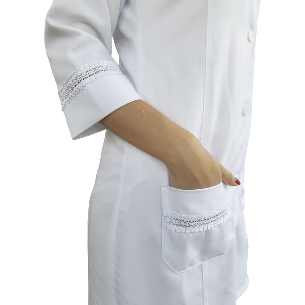 Jaleco Avental Acinturado Manga 3/4 e Gola Padre para Médica Enfermeira Esteticista Gabardine Bu268