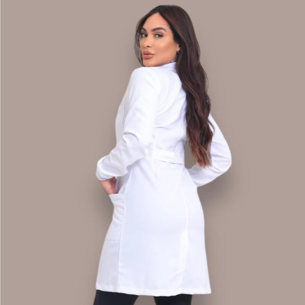 JALECO FEMININO GOLA PADRE COM PUNHO O Jaleco Feminino Acinturado Gola Padre e Punho é ideal para profissionais e estudantes da área da saúde que procuram por um jaleco com muito conforto, praticidade, estilo e segurança para o dia a dia de trabalho. Possui gola padre, que oferece maior proteção ao profissional. Vai até o pescoço, evitando qualquer contato de substâncias contaminantes com a pele do profissional. Os punhos fechados dão maior segurança no dia a dia, por evitar o risco de contato com agentes contaminantes, além de impedir que os punhos se enrosquem em instrumentos, evitando acidentes. Nossos Jalecos são feitos com os melhores tecidos e possuem acabamento impecável! O jaleco se modela muito bem ao corpo. É acinturado, feito para valorizar a silhueta feminina e possui um caimento perfeito. Possui 3 bolsos frontais, sendo um superior e dois inferiores. Contamos com uma grande diversidade de modelos para que você fique sempre elegante e confortável com sua escolha. Temos 5 anos de experiência produzindo jalecos e pijamas cirúrgicos. Durante todos esses anos ouvimos nossos clientes para desenvolver produtos que atendam suas principais necessidades. Confeccionado em Microfibra Gabardine. Composição: 100% poliéster. O Gabardine é um tipo de microfibra, tem um aspecto sedoso, porém firme e elegante. Por isso tem um ótimo caimento e é considerado a melhor opção para quem procura um jaleco com alta durabilidade, e que seja resistente a amassados e ao amarelo. A microfibra Gabardine torna-se mais brilhante com o tempo, por isso um jaleco com esse tecido pode durar anos! CARACTERÍSTICAS DO JALECO: . Acinturado . Gola Padre. . Punhos Fechados . Confeccionado em Microfibra Gabardine . Botões escondidos . 3 bolsos frontais . Não fica transparente Respondemos o chat, qualquer dúvida estamos a disposição.