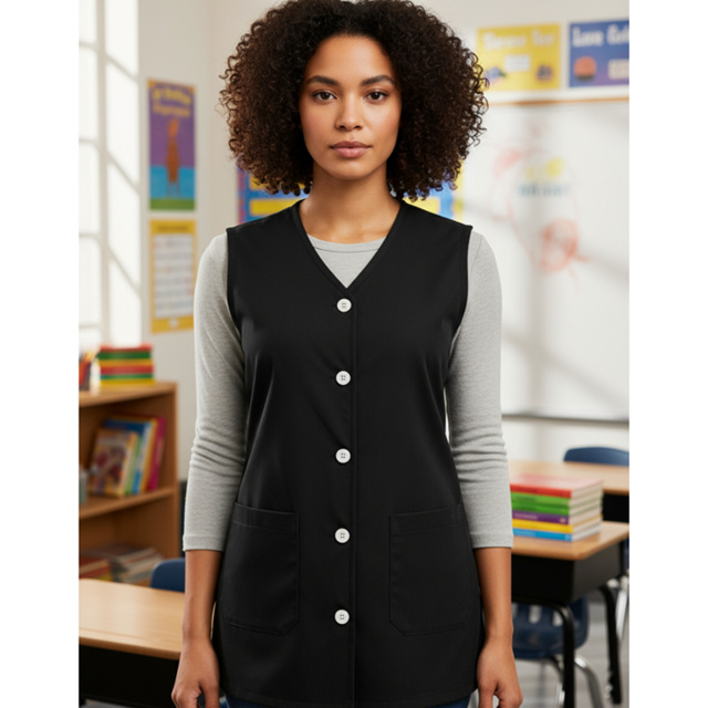 Jaleco Cavado Avental Feminino Sem Manga Professora Auxiliar Manicure Enfermeira Dentista Gola V