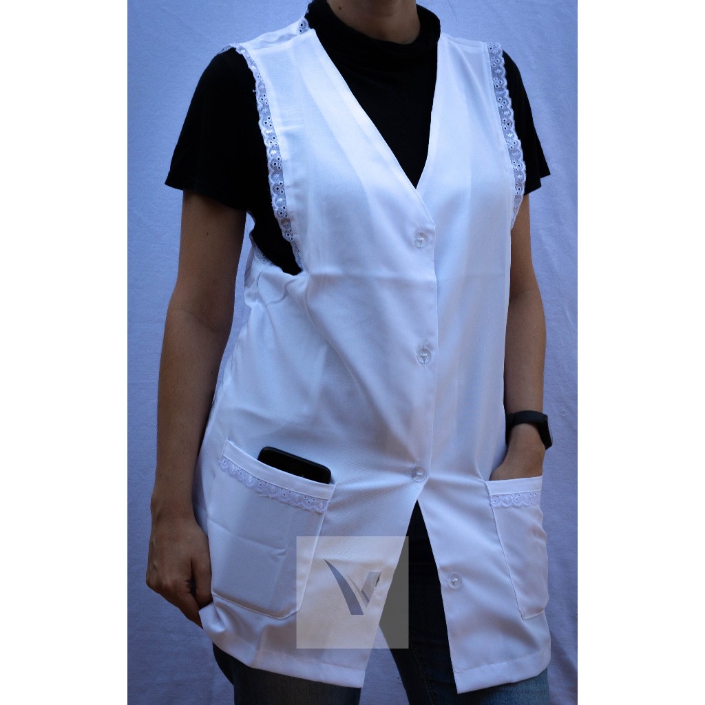 Jaleco Feminino Cavado com Detalhes em Renda Lese – Estilo, Delicadeza e Conforto no Seu Dia a Dia. Descrição do Produto: O Jaleco Feminino Cavado com Renda Lese é a união perfeita entre charme e funcionalidade. Desenvolvido especialmente para profissionais que prezam por um visual elegante, leve e confortável, ele é ideal para professoras, recepcionistas, atendentes, cuidadoras e muitas outras áreas. Seu design cavado proporciona maior mobilidade e frescor, enquanto os delicados detalhes em renda lese nos bolsos e cavas valorizam o visual com um toque romântico e profissional. Diferenciais do Produto: Tecido Oxford de alta qualidade: leve, com ótimo caimento, macio ao toque e ideal para uso o ano inteiro. Fechamento com botões transparentes, discretos e elegantes. Dois bolsos inferiores funcionais, com acabamento reforçado e detalhe em renda lese. Costuras e acabamentos bem estruturados, garantindo mais durabilidade. Modelagem moderna que valoriza o corpo e oferece liberdade de movimento. Cuidados com a Peça: Para garantir a durabilidade e beleza do seu jaleco: Lave separadamente das demais roupas. Prefira sabão neutro. Lave à mão ou use o ciclo suave da máquina (tecidos leves). Não use alvejante ou produtos à base de cloro – eles danificam o tecido. Enxágue bem antes de aplicar amaciante para evitar manchas. Seque à sombra, de preferência em um cabide. Ao passar, ajuste a temperatura do ferro conforme indicado para tecidos de Oxford, evitando marcas brilhantes. Composição: Tecido: Oxford Tabela de Medidas: Tamanho Ombro Busto Comprimento Quadril PP 32 cm 82 cm 73 cm 90 cm P 33 cm 90 cm 74 cm 96 cm M 34 cm 94 cm 77 cm 102 cm G 37 cm 104 cm 80 cm 112 cm GG 43 cm 113 cm 84 cm 120 cm XG 45 cm 120 cm 86 cm 126 cm Compromisso com a Qualidade: Nossos fornecedores têm mais de 15 anos de experiência na fabricação de jalecos, o que garante peças com acabamento impecável, modelagem precisa e longa durabilidade. Garantia de conforto e elegância para o seu dia a dia.