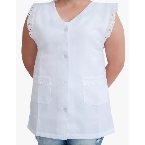 Jaleco Feminino Acinturado Sem Manga Com Renda Lese