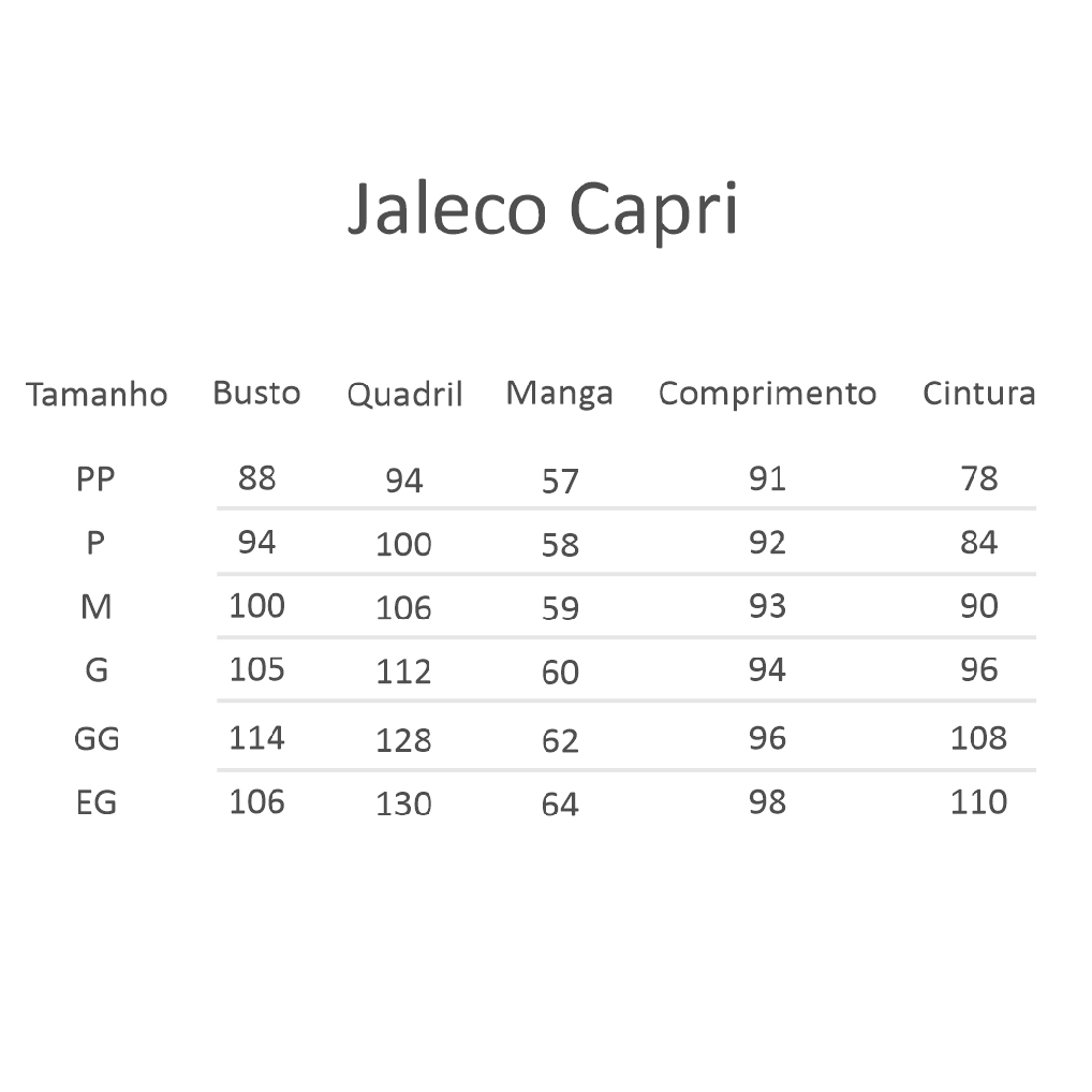 Jaleco Feminino Gola Padre c/ Punhos Diversas Cores Capri Gardenia Uniformes