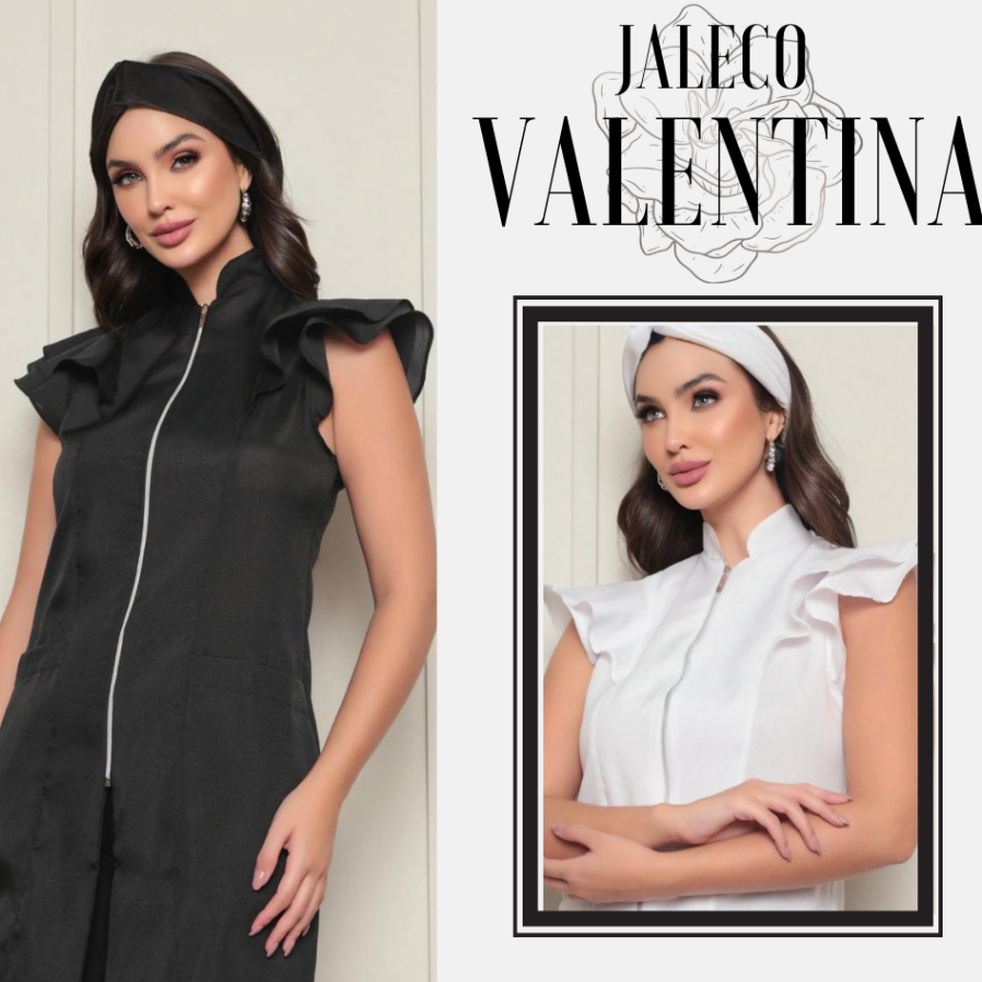 O Jaleco Valentina é confeccionado em tecido oxford, esse modelo é super Confortável, Sofisticado e cheio de Elegância! Possui gola padre, manga curta com babado, zíper central prata, bolso discreto, porém eficiente! Seus recortes proporcionam melhor movimento ao profissional. Disponível nos tamanhos PP P M G GG