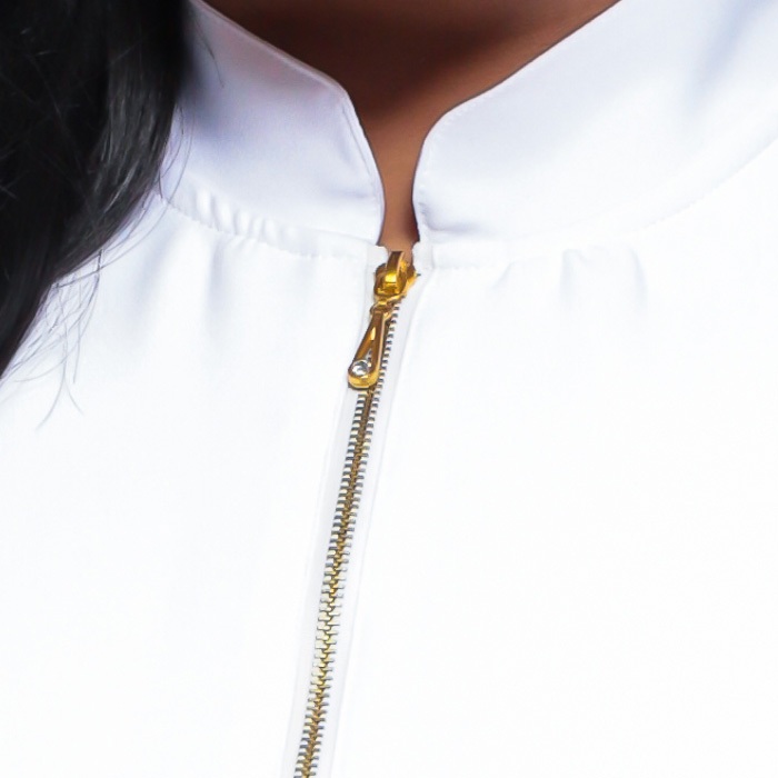 Jaleco Feminino Manga Longa com Zíper Dourado Slim Tecido Alfaiataria com Elastano Plus Size