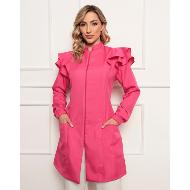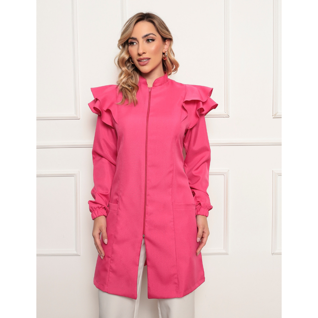 Jaleco Feminino Manga Longa Victoria Zíper Pink Gardenia Jalecos