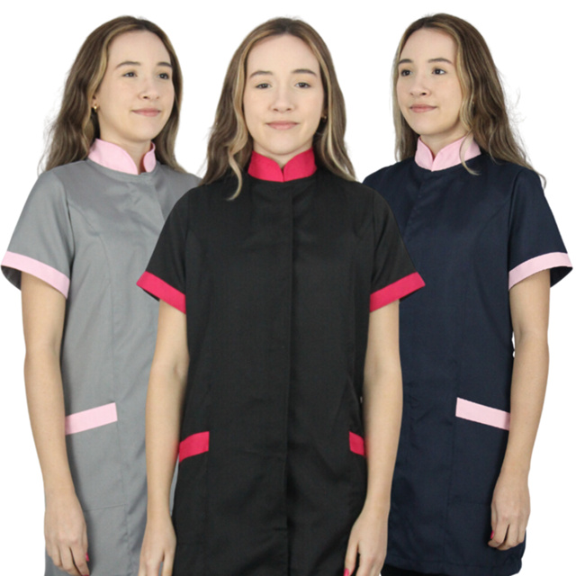 Jaleco Manga Curta Feminino Acinturado Diversas Combinações De Cores