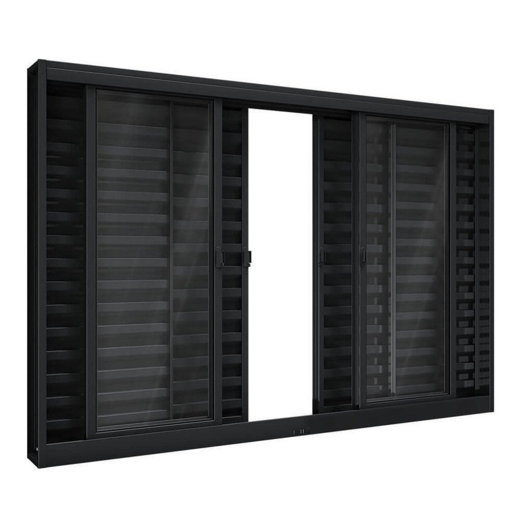 Janela de Aço Veneziana de Correr Central 6 Folhas 100x100cm Aço Pronto Riobras