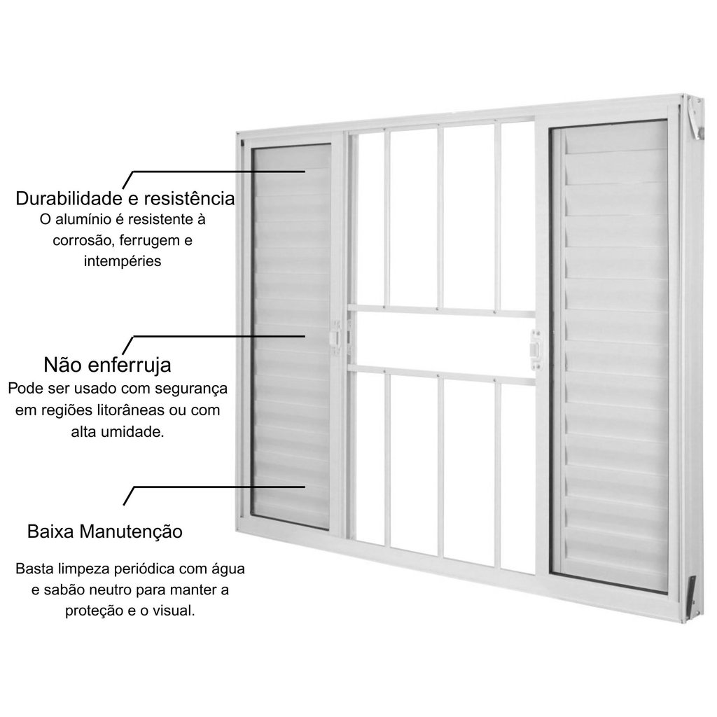 Janela de Alumínio Veneziana 100x150cm 4 Folhas com Grade sem Vidro Soft Plus Mgm 100 cm x 50 cm