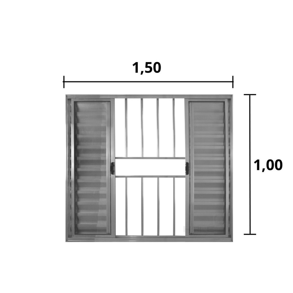 Janela de Alumínio Veneziana 100x150cm 6 Folhas Grade Hale Esquadrias Cromado