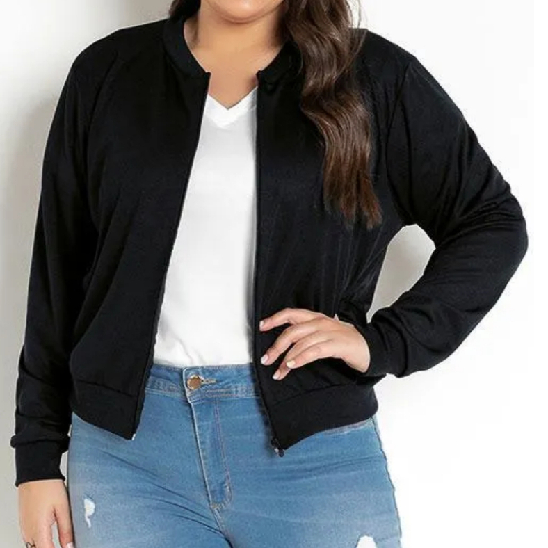 Jaqueta Blusa de Frio Corta Vento Suplex Com Ziper Cor Preta Plus size