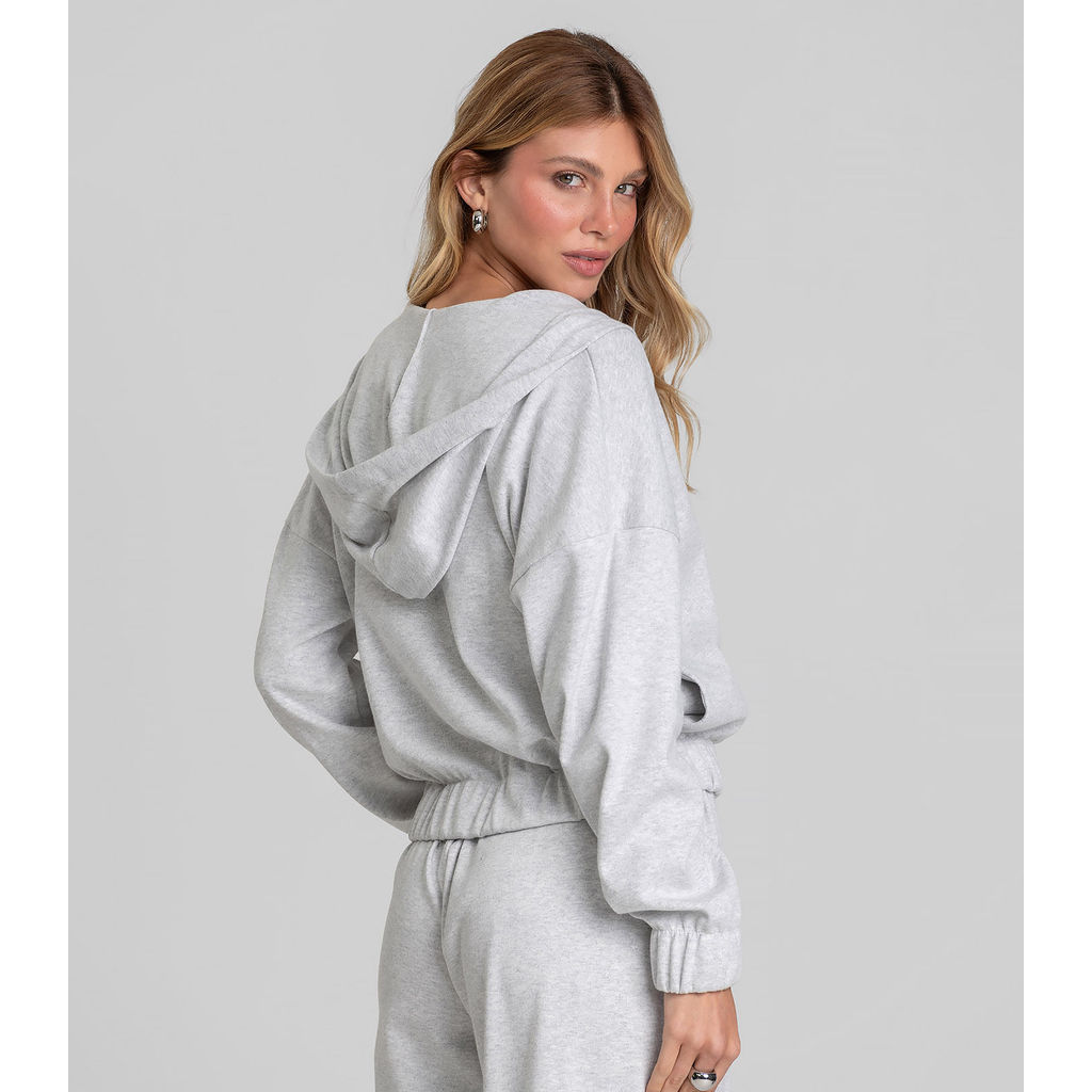 Jaqueta com Capuz Feminino em Suedine Dianna Cinza