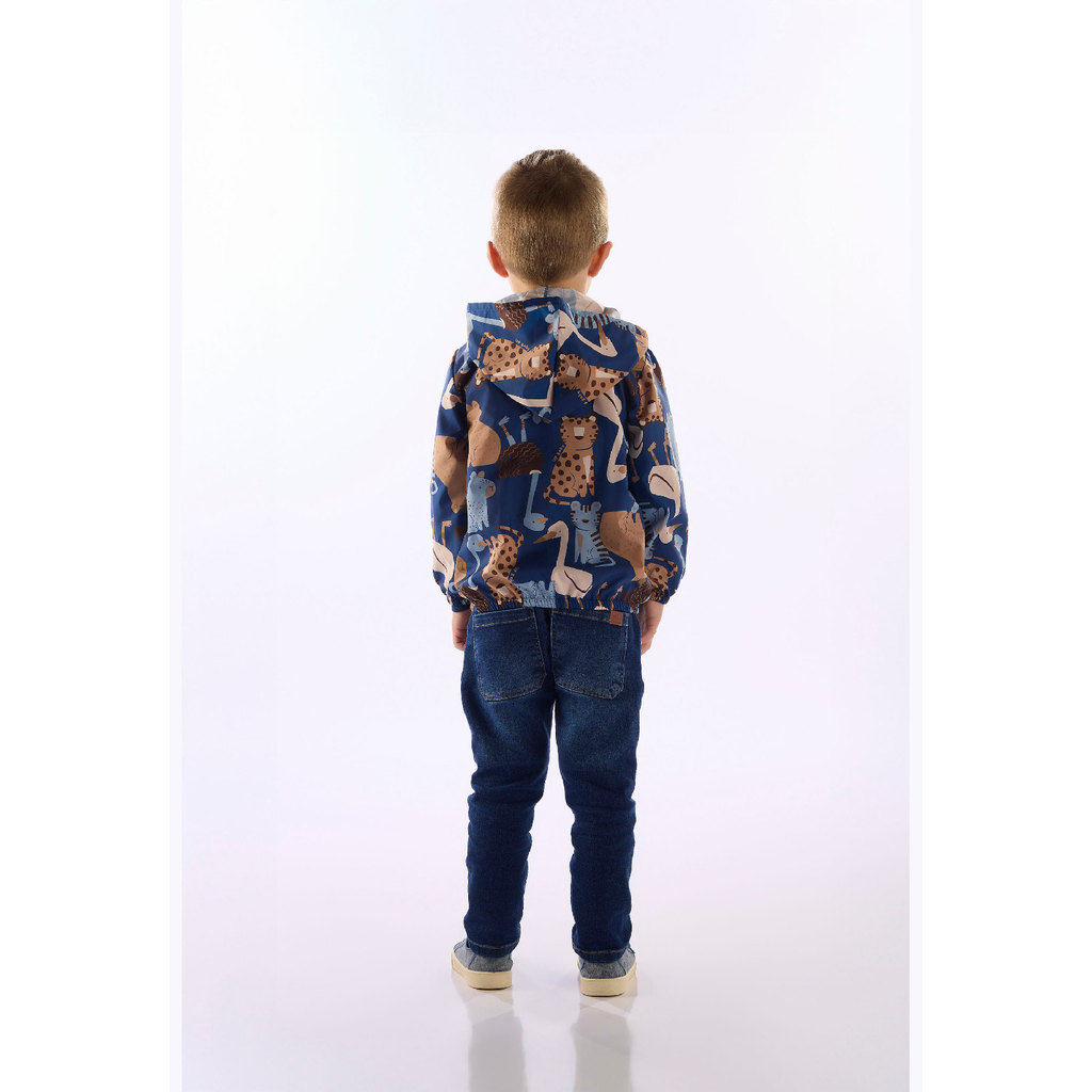 Pensada para crianças cheias de energia, esta jaqueta corta-vento oferece conforto e estilo. Feita em poliéster resistente, possui estampa sublimada de animais e acabamento moderno. O forro em malha de algodão, o capuz funcional, o fechamento em zíper e os elásticos garantem proteção e ajuste ideal para brincar ao ar livre.Tecido: Corta VentoComposição: 100%poliésterModelagem: JustaComprimento Mangas: LongaForro: SimDecote/Gola: VFechamento: ZíperInformações Extras: Possui estampa
