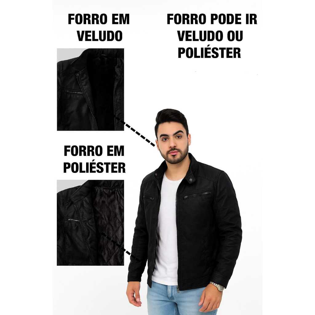 Jaqueta de couro masculina Tamanho P M G GG EXGG ATENÇÃO: JAQUETAS PODEM SOFRER ALTERAÇOES NOS DETALHES E NOS BOLSOS,FORRO PODE VIR COM 1 ZÍPER, COM 2 ZÍPERES OU LISA NA PARTE SUPERIOR. OBS : podem ir com ou sem capuz dependendo do lote da jaqueta , deixamos claro que pode ir com ou sem , sendo o capuz removível ! O zíper pode ter alterações como ir invertido de cima para baixo A cor real do item pode ser ligeiramente diferente com a imagem mostrada causada por muitos fatores, como: o brilho do monitor e o brilho da luz. A touca pode vir com o detalhe em couro e a opção da touca removível em todas Pode ser o modelo sem touca também! O modelo pode vir com alguns detalhes como fecho, zíper ou detalhes na própria jaqueta que são básicos, mas será a mesma. Sobre quesito em relação ao forro ele pode variar entre veludo e poliéster, mas não interfere no modelo da jaqueta! Consulte o Vendedor!
