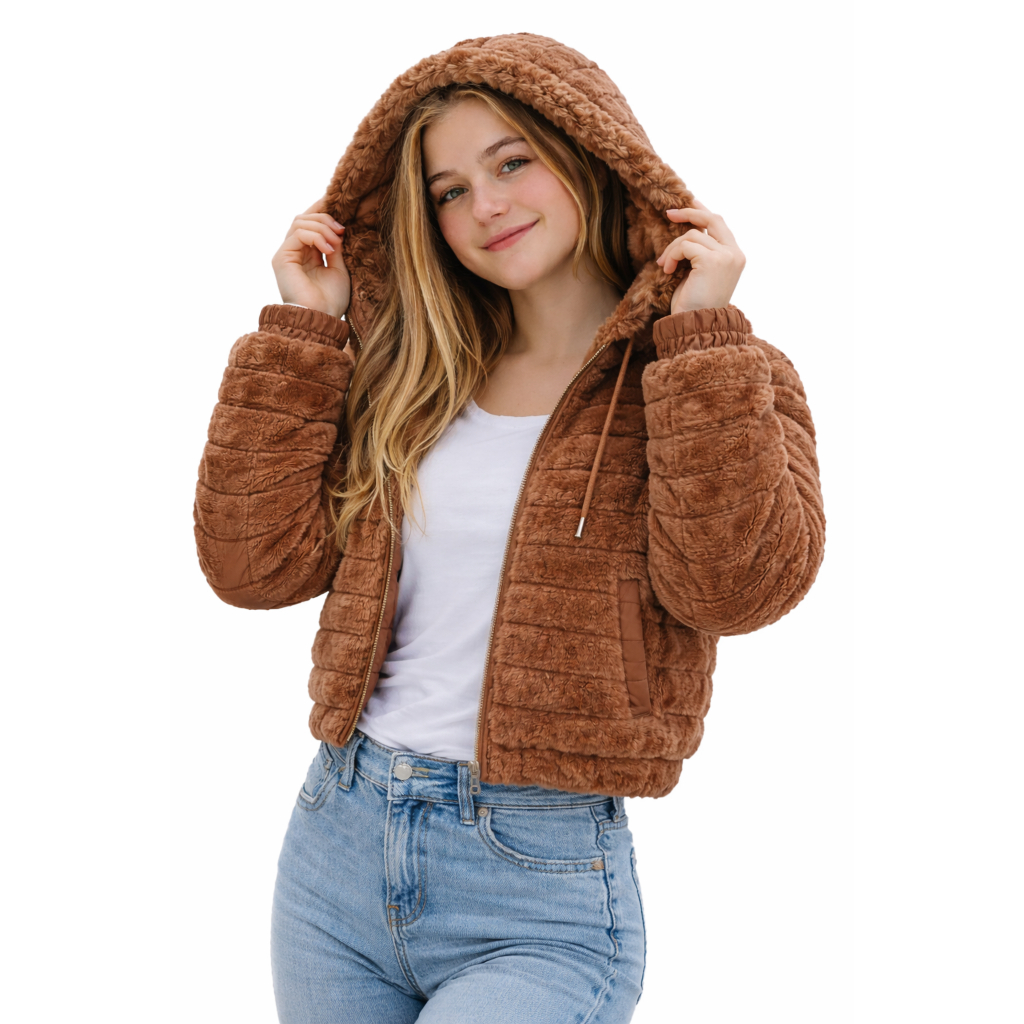 Jaqueta Cropped Dupla face Puffer Juvenil Forrada Pelucia Capuz Removivel Bobojaco Inverno Frio 6/16