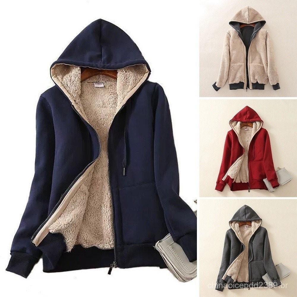 Jaqueta De Forro Grosso De Pelúcia Feminina Para Adultos Adolescentes