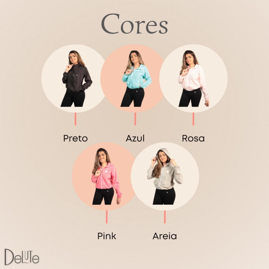 Jaqueta Feminina Delute Adulto Corta Vento sem Forro Esportiva Ultra Leve Resistente à Água Lisa