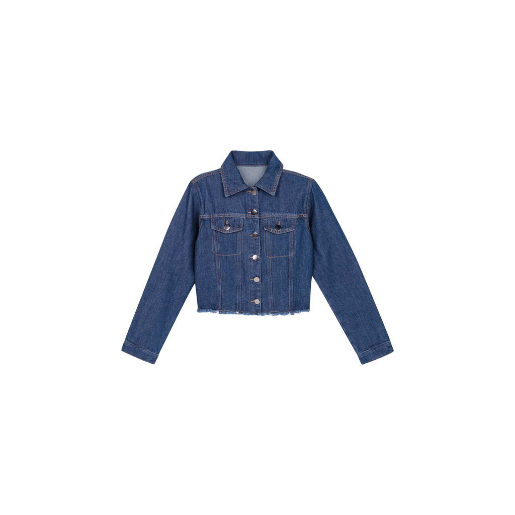 Jaqueta Feminina Jeans Barra Desfiada Marialícia Azul
