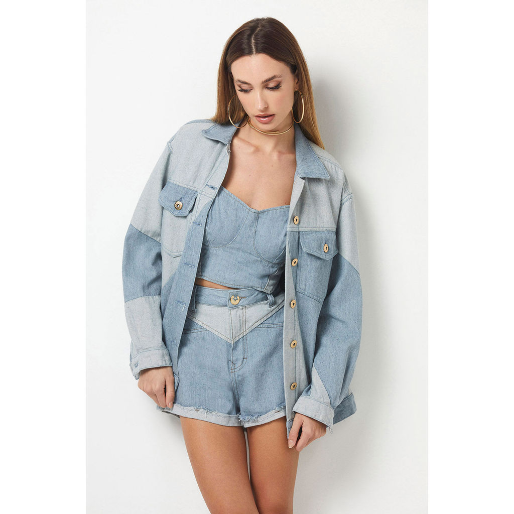 Jaqueta Feminina Patchwork Premium Planet Girls Jeans Claro