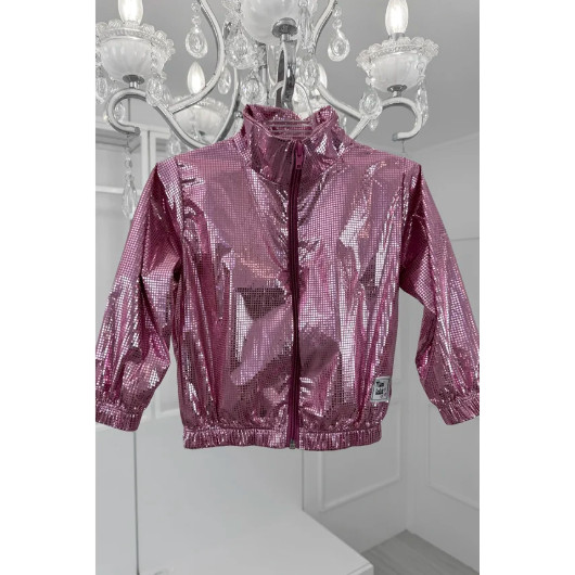 Jaqueta Infantil Corta Vento Rosa Metalizado